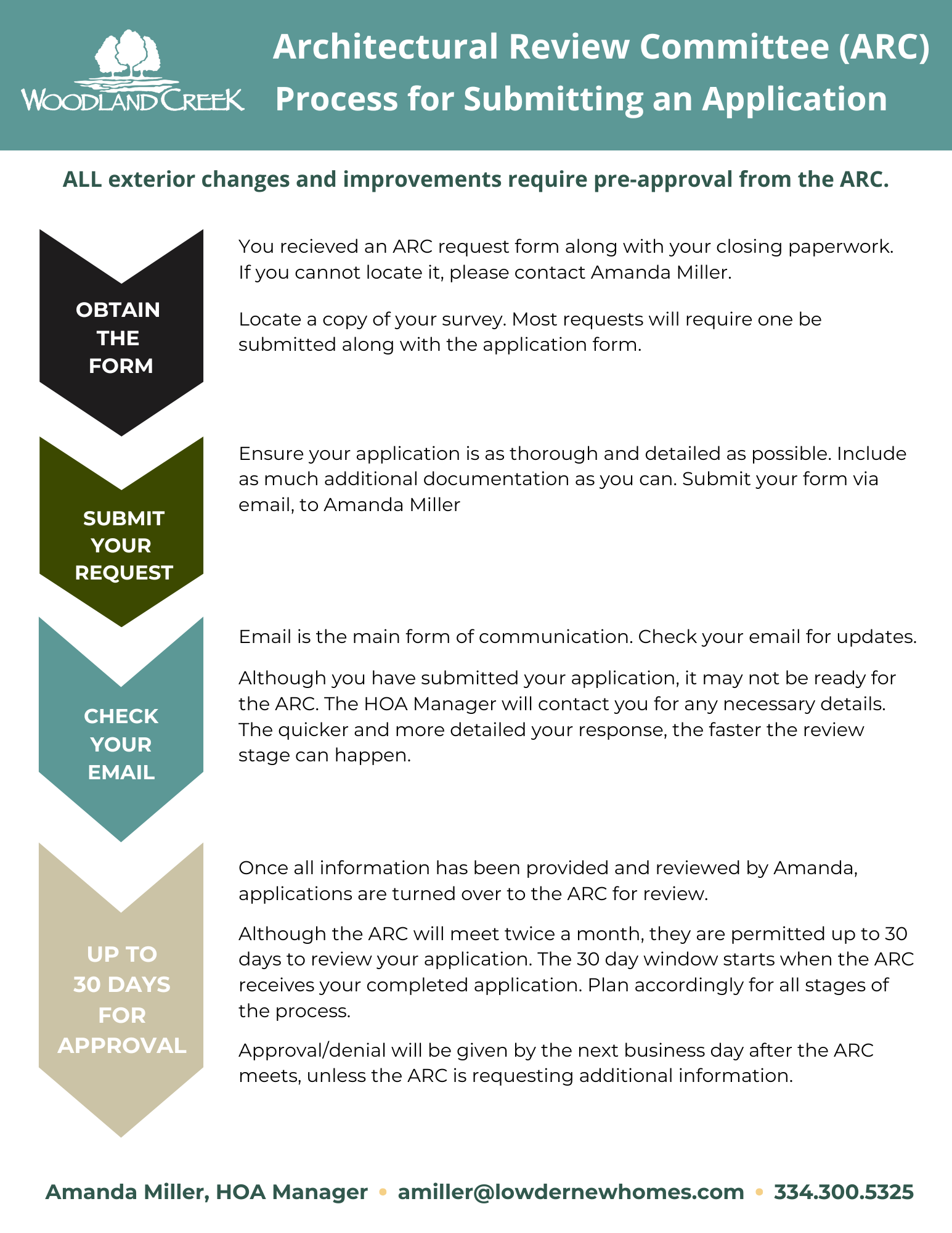 Reach out to your HOA manager with any questions.